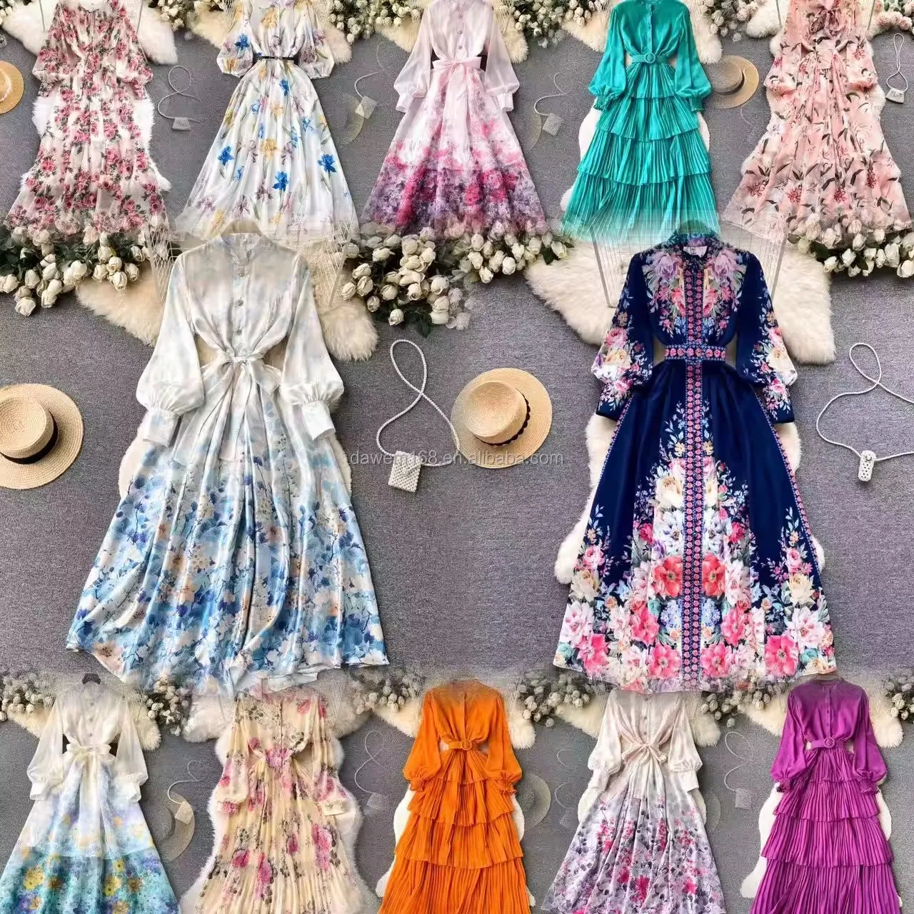 Chiffon Midi Maxi Dress Deep V Neck Colorful Patchwork Lace Ruffles Floral Pleated Techniques Plus XS Sexy/Sweet Plain Dyed